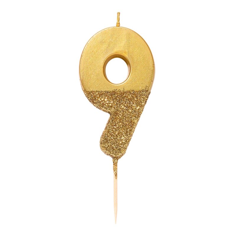 gold glitter number candle – 9