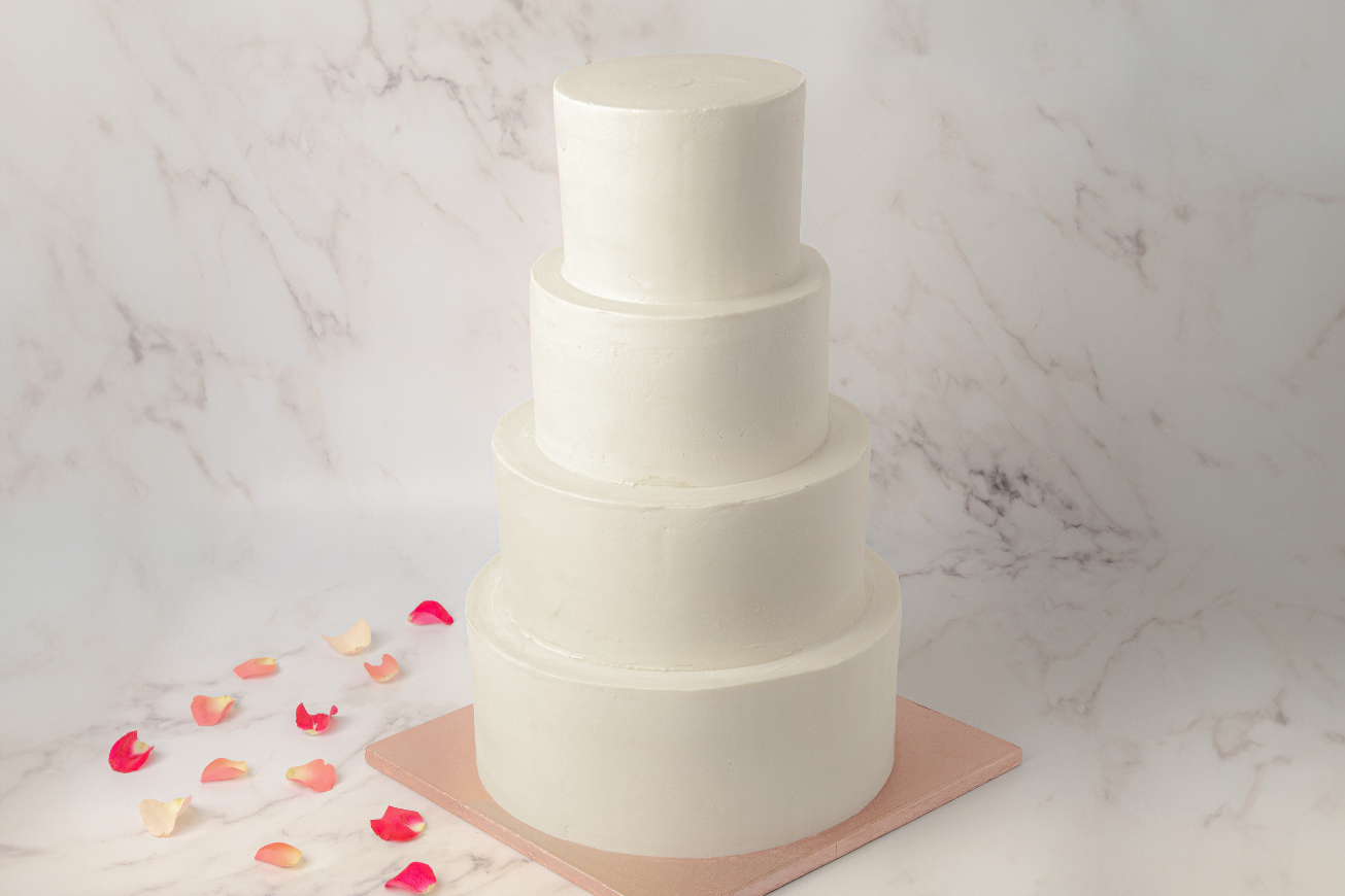 We offer a range of different sizes and tiers of our buttercream wedding cakes online to cater for parties and gatherings of any size. If you’re celebrating with only a few of your closest friends and family, our 2 tier wedding cakes should be the right one for the occasion - if the party is bigger, consider having one of our delectable two or three tier wedding cakes. If you want to go all-out, then our four tier wedding cakes are the best ready made wedding cakes online for the those crowded parties. You can have a wedding cake delivery to any London venue, taking the stress and hassle out of transporting it yourself, or you can pick it up from our Greenwich bakery if you feel up to the task!